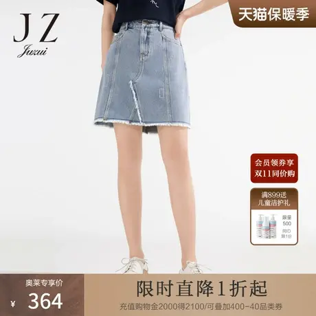 JZ玖姿小香风半身裙春季新款女通勤A型浅蓝短款腰裙